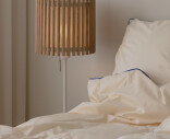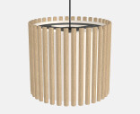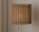Komorebi är ett japanskt ord för solljus som skiner genom trädens löv, vilket på ett bra sätt beskriver denna lampskärm gjord av trälameller och textil. Kombinationen av trädetaljer och textil hjälper till att jorda hemmet och gör miljön lugn och upplyftande.