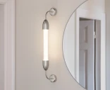 En inbyggd ljusdiffusor i centrum ser till att ljuset sprids jämnt – vilket gör lampan särskilt lämpad som sänglampa, spegelbelysning eller stämningsskapare längs en vägg.