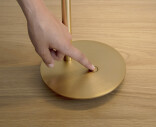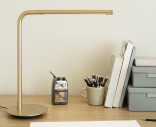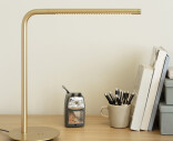 Omni Table, i pläterad mässing, är en multifunktionell bordslampa med 360 graders ljus som erbjuder praktisk och stilren belysning för ditt skrivbord eller nattduksbord.