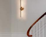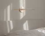 “Embracing form and function in a symphony of brass and dotted lines of light, the Omni wall will cast a soft light on everything from your bedside to the painting on your walls.”