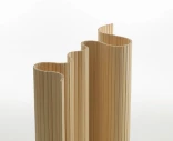 Tillverkad i Finland av lackad furu, skiljer sig skärmen från många av Aaltos övriga möbler som traditionellt görs i björk. Furu är ett material som får en varm patina över tid och gör varje exemplar unikt. Konstruktionen är lätt att flytta, rulla ihop och forma efter behov – en flexibel lösning för både bostäder och offentliga miljöer.