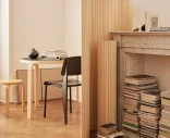 Skärmväggen tillhör de mest arkitektoniska möblerna som Alvar Aalto formgav. Den böljande formen tillför en mjuk rytm i rummet och ger samtidigt en praktisk avgränsning. Med en höjd på 150 cm är modellen väl anpassad för att dela av ytor i hemmet och fungerar särskilt bra som fondvägg bakom en soff- eller matgrupp.