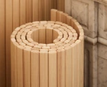 Tillverkad i Finland av lackerad furu skiljer den sig från många andra Aalto-möbler som oftast görs i björk. Furu är ett levande material som med tiden utvecklar en varm patina och gör varje skärm unik. Den är lätt att flytta, forma och rulla ihop för förvaring, vilket gör den användbar i både bostäder och projektmiljöer.