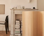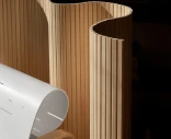 Skärmvägg 100C i höjd 130 cm är en vågformad design av Alvar Aalto från 1936. Den fungerar som rumsavdelare i hemmakontoret, bakom soffan eller för att markera en separat hörna.