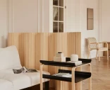 Skärmvägg 100D i höjd 100 cm är den lägsta versionen av Alvar Aaltos vågformade design från 1936. Den fungerar som en låg rumsavdelare i kombination med fåtöljer och andra sittmöbler.