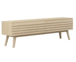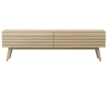 Designen på TV-bänken är en nytolkning av de gamla lamellportarna. Målet är att skapa en böjd och integrerad design. Dörrarna har ett klassiskt lamellutseende som skapar rena och eleganta linjer.