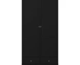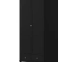 Garderoben levereras med en hylla och en klädstång, och kan enkelt kompletteras med fler hyllplan efter behov. Tack vare seriens modulära system kan du bygga vidare och anpassa möbeln efter just ditt utrymme och dina behov.