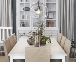 Ett klassiskt överskåp med glasdörrar från Englessons Stockholm 2.0-serie. Skåpet placeras ovanpå en skänk och skapar en elegant och praktisk förvaringslösning för glas och porslin.