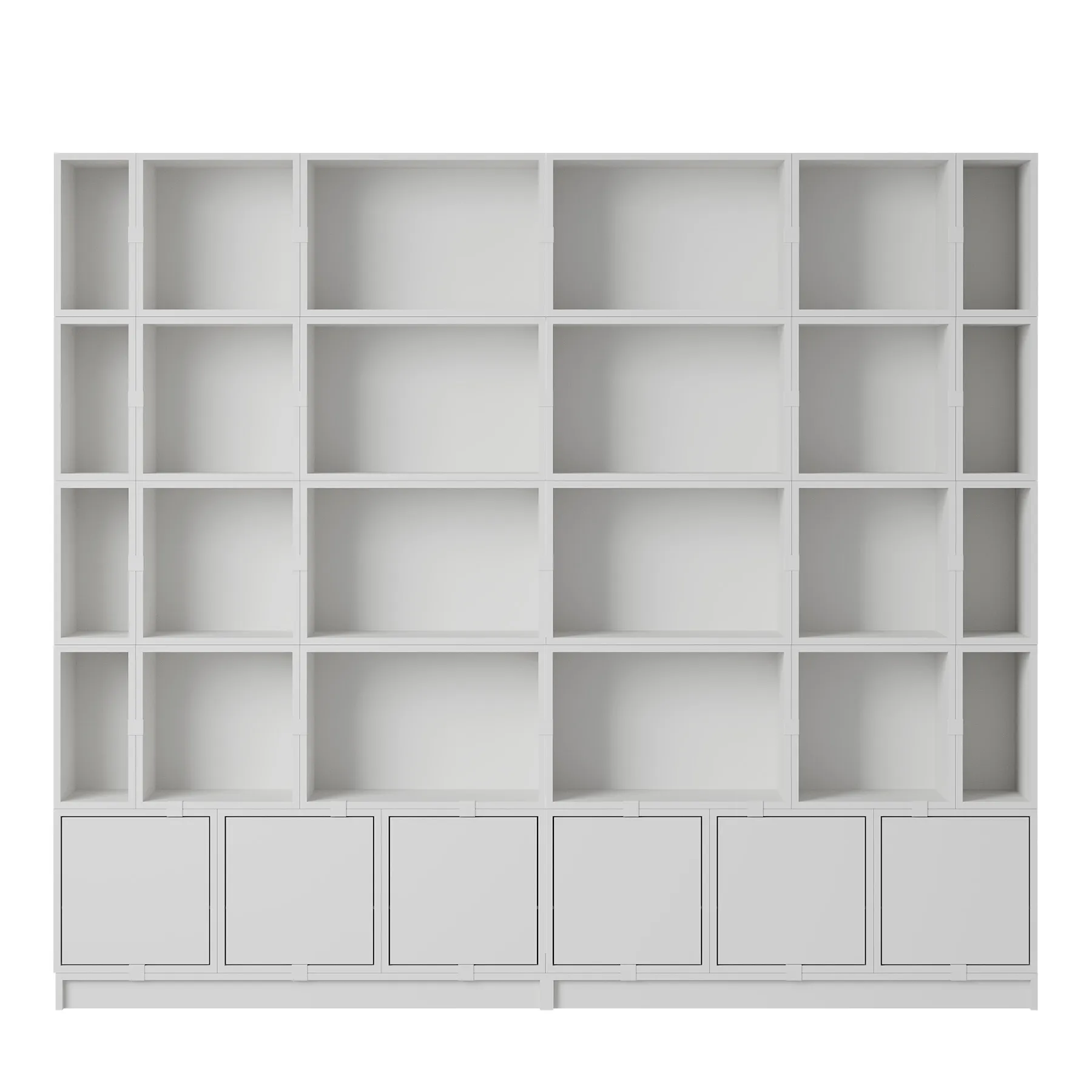 Stacked Bookcase Config 1 är en färdig kombination inom Muutos Stacked Storage System, framtagen för att fungera som en generös bokhylla med både öppen och dold förvaring. De öppna modulerna ger luft och överblick, medan de nedre skåpen skapar lugn i helheten genom att samla undan sådant som inte behöver stå framme.