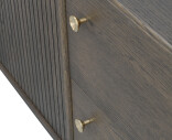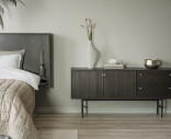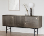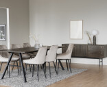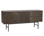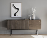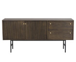 Clearbrook sideboard i en lackad brun ekfärg med svarta metallben. Skänken är i brunbetsad ekfanér med massiva kanter och har en flyttbar hylla av trä innanför dörrarna. Skänken har praktiska lådor på ena sidan och mässingsfärgade beslag. Lådor och dörrar med mjukstängning. Kombinera gärna med Clearbrook skåp.