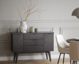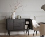 Filippa sideboard med rymliga lådor och skåp. Sideboardet levereras färdigmonterat och lådorna samt dörrarna har mjukstängningsmekanismer.