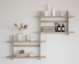 Westlock är en hylla för dig som vill ha något som både är praktiskt och tillför en lugn, genomtänkt känsla till rummet. Hyllplanen och gavlarna är fanerade i trä, och den massiva regeln bakom ger stabilitet när hyllan sitter på väggen. De rundade kanterna gör formen mjukare och helheten mer harmonisk.
