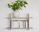 Hyllan fungerar bra på egen hand, men går också att bygga vidare på när du behöver mer utrymme. Genom att placera flera hyllor bredvid eller ovanför varandra kan du skapa en större och sammanhängande vägglösning som känns både praktisk och visuellt balanserad.