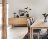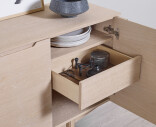 Skänk 306 har en enkel och tidlös design, passande för en stilfull inredning. Den har två stora lådor och två hyllplan bakom två av dörrarna. Ett stort skåp med bred hylla, perfekt för stora tallrikar och skålar, gömmer sig bakom de andra två dörrarna.