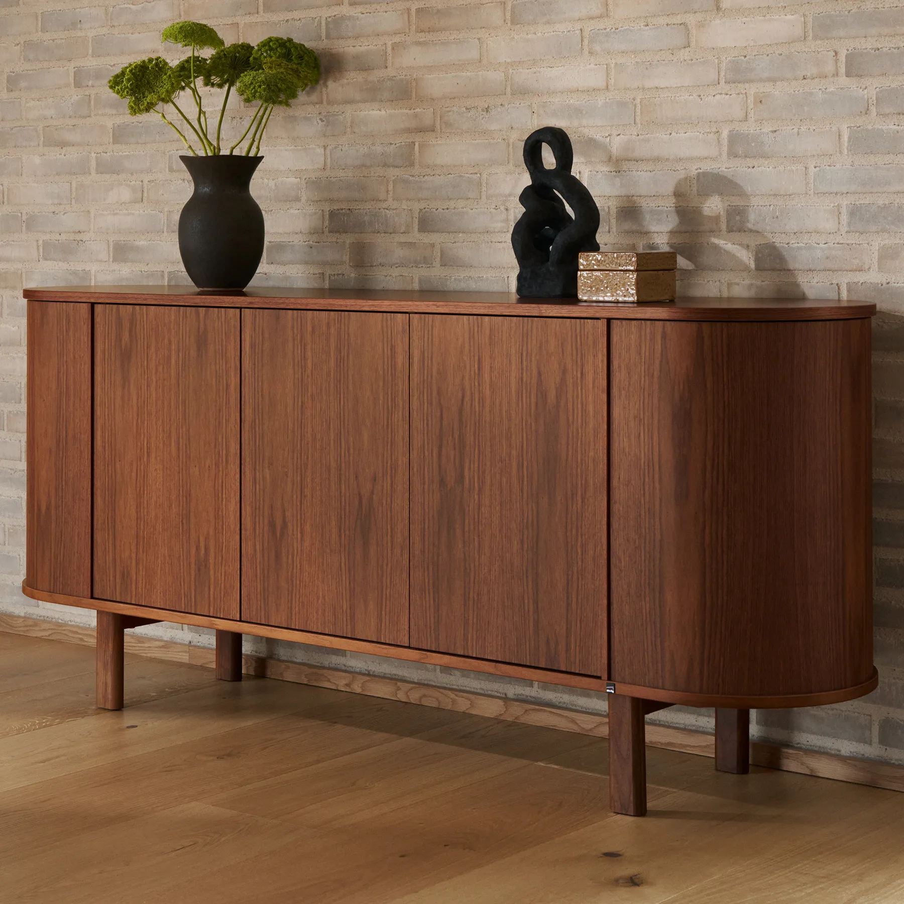 Skovby #543 är en skänk med mjuka linjer och genomtänkt funktion. De rundade hörnen, den svävande känslan och de roterande hörnsektionerna gör möbeln både vacker och praktisk i vardagen.