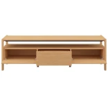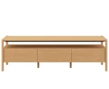 #716 är designad för dig som vill förena estetik och funktion. Den öppna hyllan ger plats för medieutrustning eller dekoration, medan lådan och facken bakom den nedfällbara luckan håller vardagens teknik och tillbehör välorganiserade. De integrerade handtagen bidrar till den rena, minimalistiska känslan och den massiva träramen förstärker intrycket av gediget hantverk.