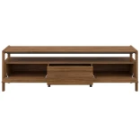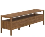 #716 är designad för dig som vill förena estetik och funktion. Den öppna hyllan ger plats för medieutrustning eller dekoration, medan lådan och facken bakom den nedfällbara luckan håller vardagens teknik och tillbehör välorganiserade. De integrerade handtagen bidrar till den rena, minimalistiska känslan och den massiva träramen förstärker intrycket av gediget hantverk.