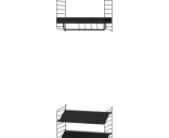 Dela ditt hallsystem i två delar och lägg till krokar och stänger för ytterkläder och perforerade skohyllor på de väggmonterade gavlarna. Det här hyllsystemet kommer att hålla din hall prydlig samtidigt som det ser snyggt ut.