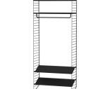 För den mer rymliga hallen har vi detta hyllsystem med all funktioner du någonsin kommer behöva. Metallhyllplan med hög kant högst upp, metallhyllplan med låg kan under med adderade accessoarer så som stång och krokar för dina ytterkläder. Perforerade skohyllor längst ner med plats för många par skor - allt i ett hyllsystem.