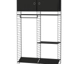 Stringkombination optimal för din hall. Golvpaneler, metallhyllor med låg kant, skåp med svängdörr och skohyllor, stänger och krokar. Denna hyllkombination för hallen tar hand om alla dina ytterkläder, väskor och skor samtidigt som den ger dig möjlighet till dold förvaring.