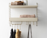 J-krokarna i pulverlackad stål optimerar din hyllkombination och passar tillsammans med metallhyllplan från String System. Krokarna håller ordning på ytterkläder, väskor, köksgeråd och andra småsaker.
