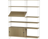Denna medelstora kombination har allt. Förvara dina mest älskade föremål och böcker på hyllorna, tidskrifter på den lutande hyllan och göm de andra sakerna i skåpet.