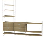 Denna kombination öppnar upp för kreativitet. Förvara allt du behöver på hyllorna och i lådorna och gör hela kombinationen personlig genom att hänga en tavla bredvid de högre golvpanelerna eller låt tavlan bara vila på hyllorna.