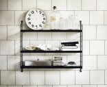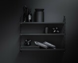 String Pocket vägghylla med svarta gavlar och hyllplan i svartbetsad ask.