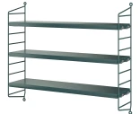 String Pocket vägghylla med gavlar och hyllplan i färgen tegnérgrön.