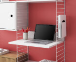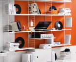 Mediahyllplanet passar med 30 cm djupa gavlar från String System.