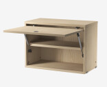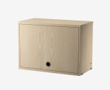 Skåpet passar till String System -seriens 30 cm djupa gavlar. Inuti finns ett innerhyllplan som kan justeras efter behov. Dörren som öppnas uppåt gör att skåpet lämpar sig utmärkt som överskåp i t.ex köket, hallen eller garderoben.