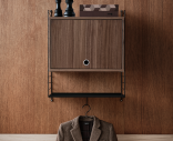 Skåpet passar till String System -seriens 30 cm djupa gavlar. Inuti finns ett innerhyllplan som kan justeras efter behov. Dörren som öppnas uppåt gör att skåpet lämpar sig utmärkt som överskåp i t.ex köket, hallen eller garderoben.
