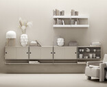 Skåpet passar till String System -seriens 30 cm djupa gavlar. Skåpet har en skiljevägg i mitten samt två innerhyllplan som kan placeras på valfri höjd.