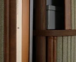De rundade skjutdörrarna i Horizons-textil glider längs hela möbelns front och kan placeras där du vill ha dem – en flexibel lösning för både dekoration och dold förvaring. Dörrarna är klädda i ett tyg tillverkat av 100 % återvunnen polyester och är certifierade enligt OEKO-TEX® och GRS. Om du vill förändra uttrycket kan dörrarna enkelt bytas ut.
