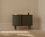 Audacious är en flexibel skänk formgiven av Jonas Søndergaard, där det du förvarar får ta mer – eller mindre – plats. De rundade tambourdörrarna glider längs kanten och låter dig själv bestämma vad som ska synas och vad som får vila i bakgrunden.