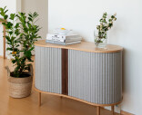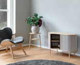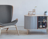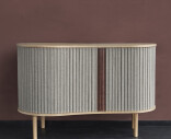 Audacious är ett skåp med personlighet, designat för att visa upp favoritsakerna eller om man så önskar gömma dem bakom vackra skjutdörrar av textil som glider runt skåpet. Inne i skåpet finns ett hyllplan. Skjutdörrarna kan enkelt bytas ut t.ex. till en annan färg.