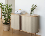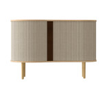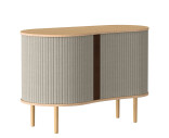 Audacious är ett skåp med personlighet, designat för att visa upp favoritsakerna eller om man så önskar gömma dem bakom vackra skjutdörrar av textil som glider runt skåpet. Inne i skåpet finns ett hyllplan. Skjutdörrarna kan enkelt bytas ut t.ex. till en annan färg.