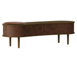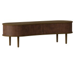 Audacious TV-bänk fungerar både som sittbänk och som mediabänk att gömma elektronik i. Vid bänkens bakvägg finns ett hål för sladdar, och med den böjda skjutdörren väljer du hur mycket som syns. I hallen är bänken en skön sittplats och bakom dörrarna ryms ytterkläder och småprylar.