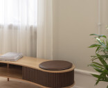Audacious TV-bänk fungerar både som sittbänk och som mediabänk att gömma elektronik i. Vid bänkens bakvägg finns ett hål för sladdar, och med den böjda skjutdörren väljer du hur mycket som syns. I hallen är bänken en skön sittplats och bakom dörrarna ryms ytterkläder och småprylar.