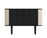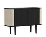 Treasures skänk i svart ek har rundade sidor klädda med textil, rotting eller konstläder, som öppnas som vingar och erbjuder förvaring för favoritböckerna eller -flaskorna. Dörrarna i mitten av skåpet gömmer rikligt med förvaringsutrymme.