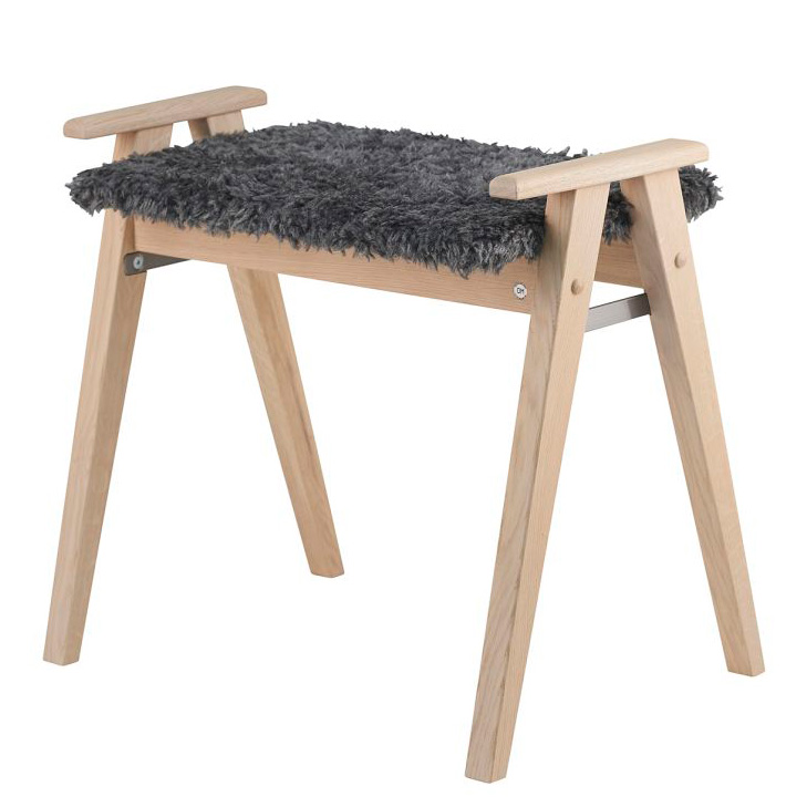 Pallen är tillverkad av massivt trä och har en robust konstruktion som garanterar långvarig användning. Sitsen är klädd i fårskinn eller fårskinnsimmitation. Perfekt för hallen, sovrummet, vardagsrummet eller barnrummet.