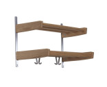 MEJA hatthylla 2-plan från Oscarssons Möbel är en svensktillverkad, stilren och praktisk hatthylla till din hall. Den är tillverkad i massiv ek och har detaljer i slipat stål.. Hatthyllan har ett hyllplan och en galgstång med infälld plexilist för att skydda träet mot slitage. Den finns i tre olika längder (59 cm, 90 cm och 115 cm) så du kan välja den som passar bäst i din hall.