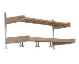 MEJA hatthylla 2-plan från Oscarssons Möbel är en svensktillverkad, stilren och praktisk hatthylla till din hall. Den är tillverkad i massiv ek och har detaljer i slipat stål. Hatthyllan har ett hyllplan och en galgstång med infälld plexilist för att skydda träet mot slitage. Den finns i tre olika längder (59 cm, 90 cm och 115 cm) så du kan välja den som passar bäst i din hall.