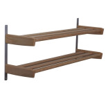 Meja skohylla 2-plan är en stilren och praktisk lösning för att hålla dina skor organiserade. Den är tillverkad av högkvalitativt material och designad för att monteras på väggen. Dess minimalistiska design och robusta konstruktion säkerställer både funktionalitet och estetik i ditt hem. Den finns i tre olika längder (59 cm, 90 cm och 115 cm), så att du kan välja den som passar bäst i din hall. Kombinera med Meja hatthylla för en komplett förvaringslösning.