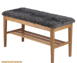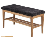 Oscarssons Möbel NADJA bänk, lackad ek/mörkgrått fårskinn eller -imitation