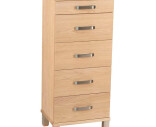 Oscarssons Möbel NADJA byrå är en tidlös möbel som kombinerar funktionalitet med stilren design. Byrån har rena linjer och en minimalistisk design som smälter väl in i de flesta inredningsstilar. Handtagen i slipat stål ger en modern touch och de fem smidiga lådorna glider lätt och tyst.