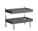 Golvmodell med 2 hyllplan och detaljer i slipat stål.