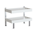 Golvmodell med 2 hyllplan och detaljer i slipat stål.