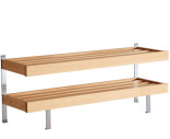 Golvmodell med 2 hyllplan och detaljer i slipat stål.