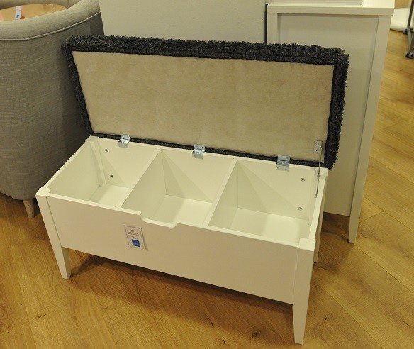 Snygg och smart hallbänk med förvaring under sittlocket.